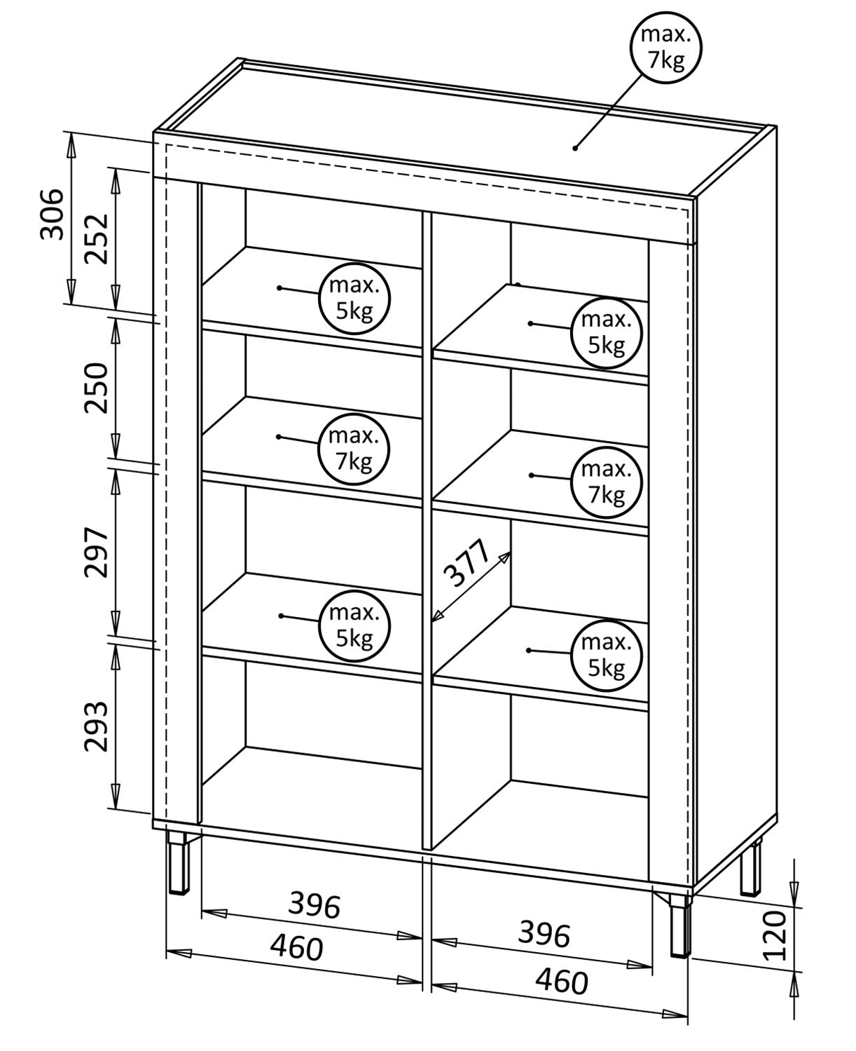 Vitrīna Lamos 96/135/39 cm melns/zelts