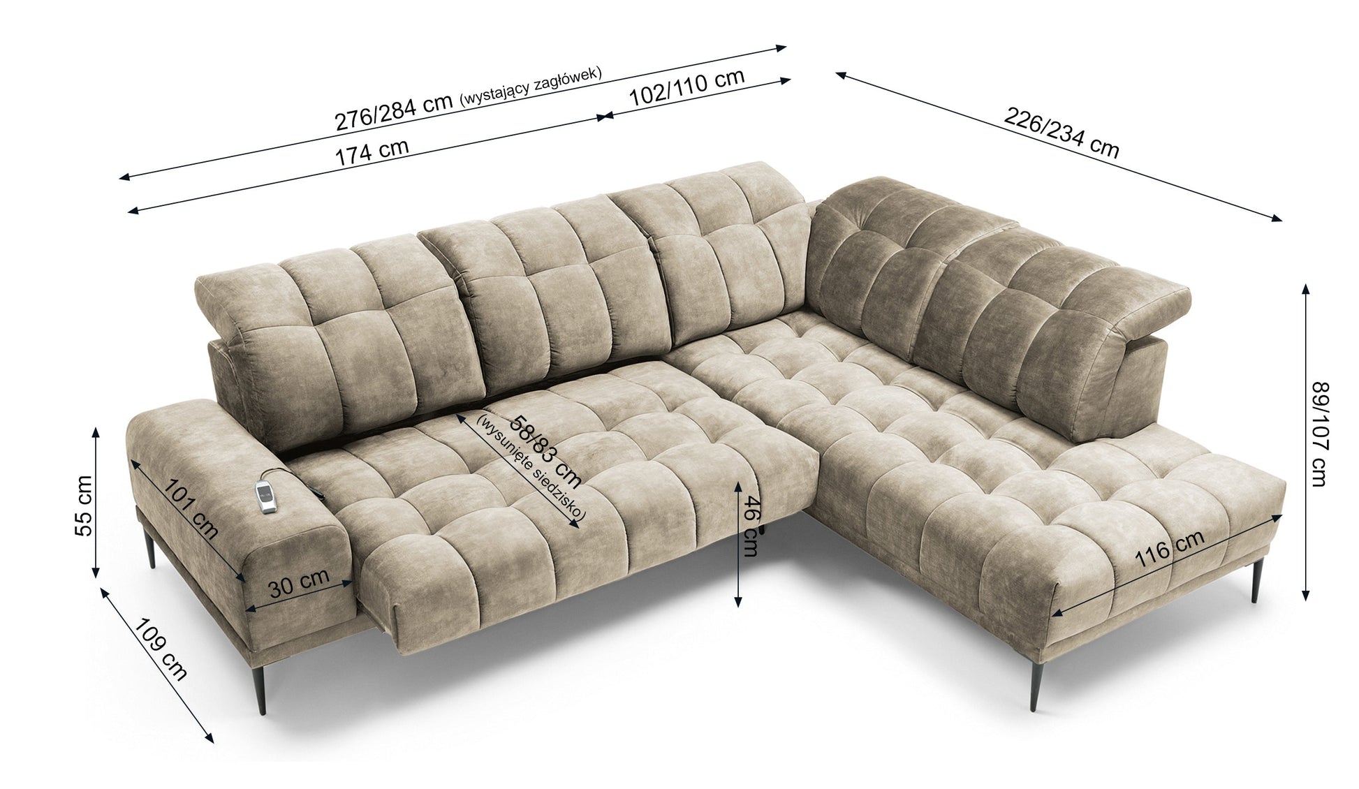 Sēdeklis (dziļums): 58 cm