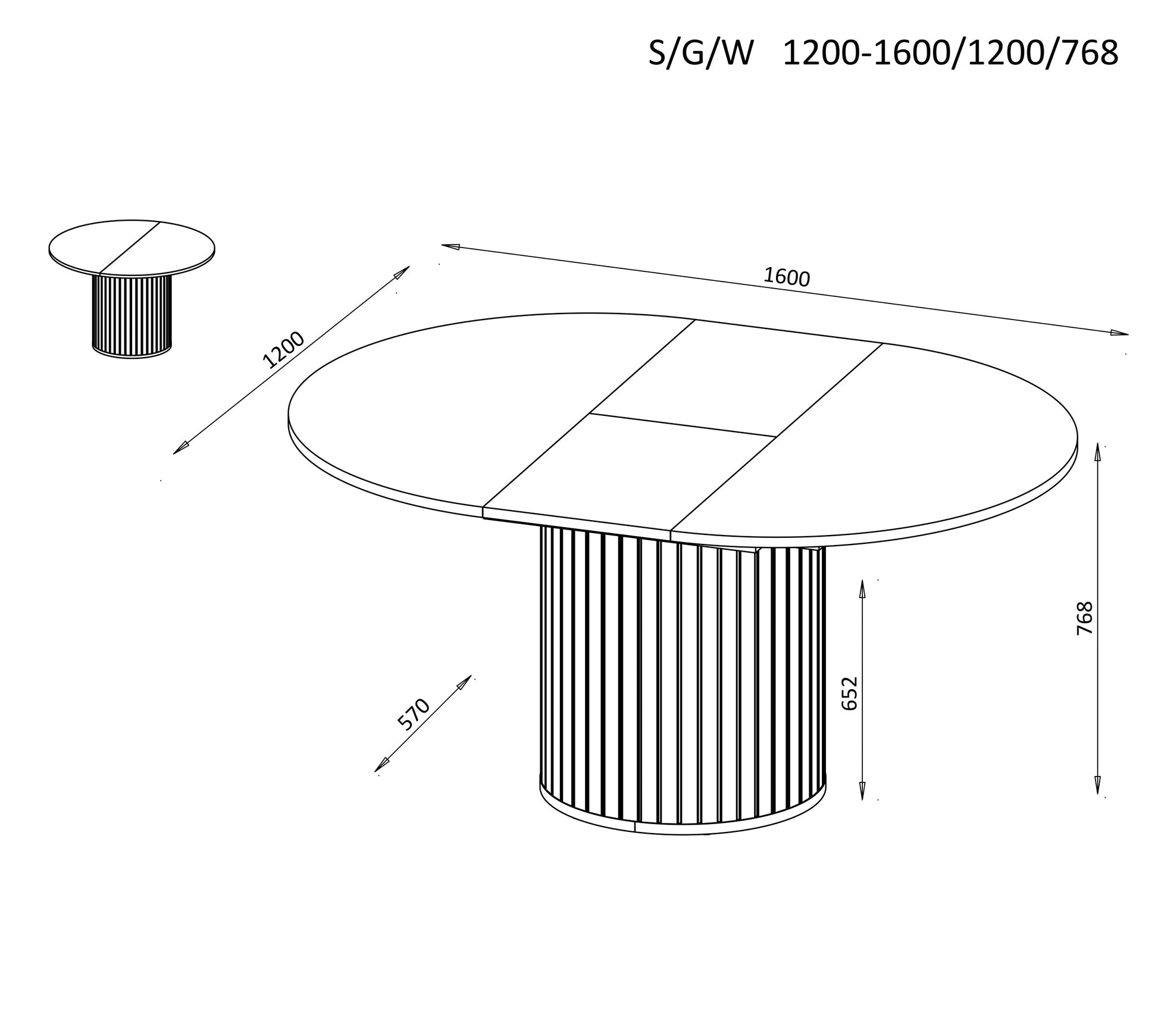 Galds Zanto 120-160/120/75 cm melns