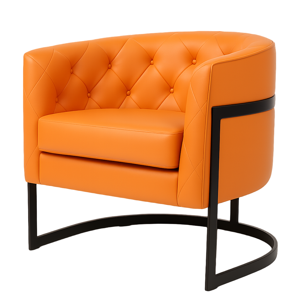 Pusapļa atzveltne ar elegantu stepētu apņem sēdekli, nodrošinot komfortu un mājīgumu. Izturīga metāla pusapļa pamatne nodrošina stabilitāti un unikālu izskatu, piešķirot nedaudz futūristisku pieskārienu.